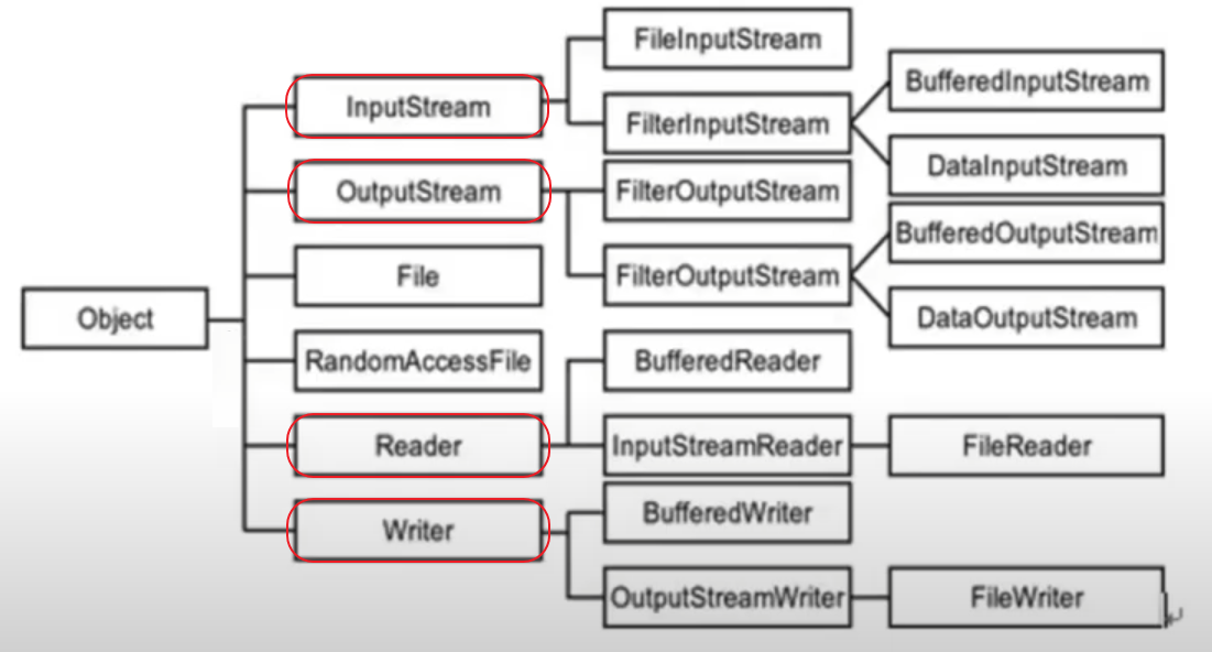 - I/O에서 사용되는 객체는 어떤 대상으로 부터 읽어들여, 어떤 대상에게 쓰는 일을 한다.
