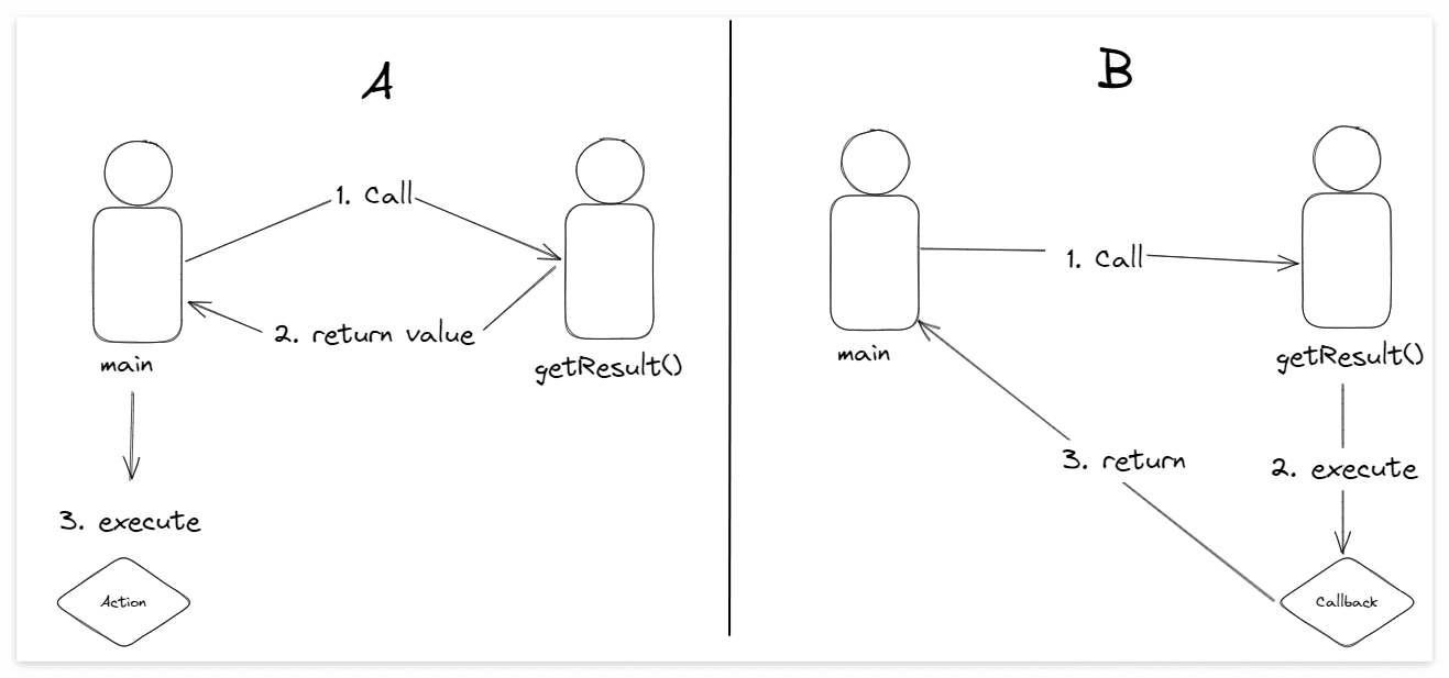 | Caller는 결과를 이용해서 action을 수행한다 | Callee는 결과를 이용해서 Callback을 수행한다 |