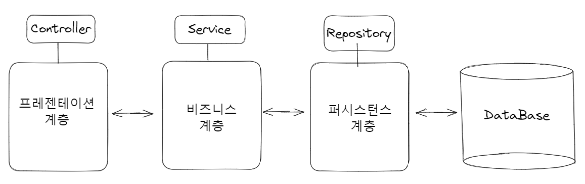 스프링 부트는 각 계층이 양 옆의 계층과 통신하는 구조를 따른다.