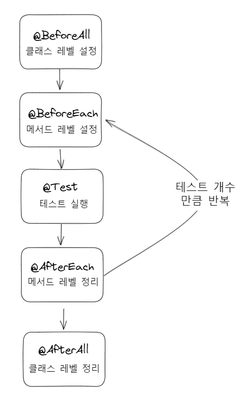 - @Test 어노테이션으로 메서드를 호출할 때마다 새 인스턴스를 생성, 독립 테스트 가능
