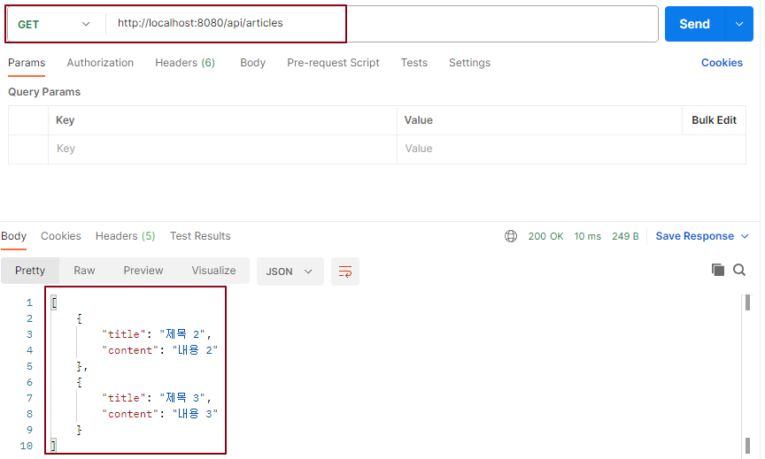 Then | 응답코드가 200 OK이고, 반환 받은 값 중에 0번째 요소의 content와 title이 저장된 값과 같은지 확인 |