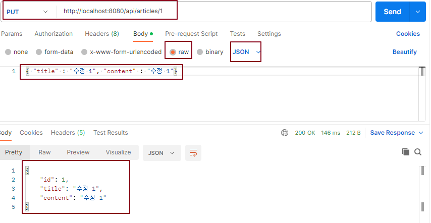 /api/articles/{id} DELETE 요청이 오면 id 값에 해당하는 값이 @PathVariable 어노테이션을 통해 들어온다.